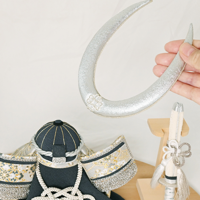 煌びやかな兜飾りの忍緒には、伝統の京組紐を用いた「無双結び」を採用。この結びには、生命力を込めるという願いが込められています。美しさと意味を兼ね備えた、特別な仕上がりです。