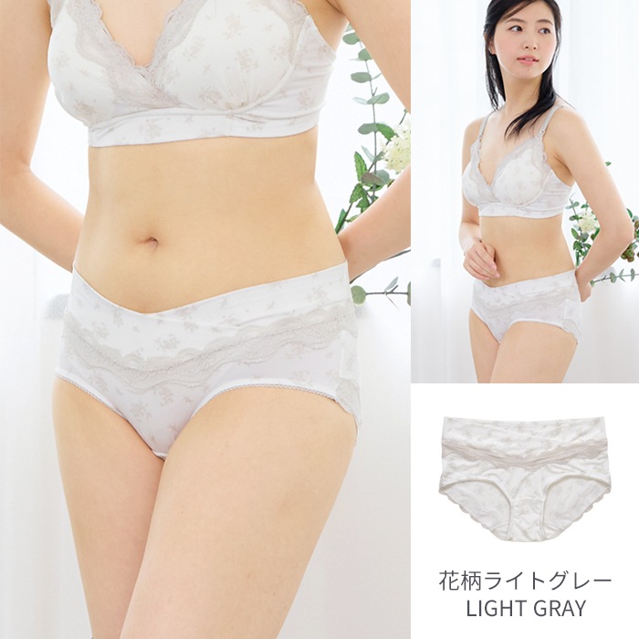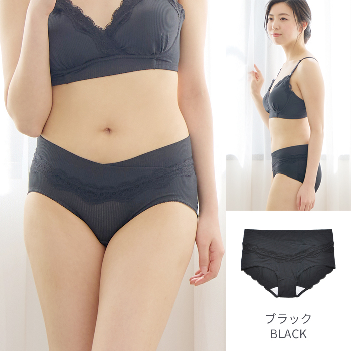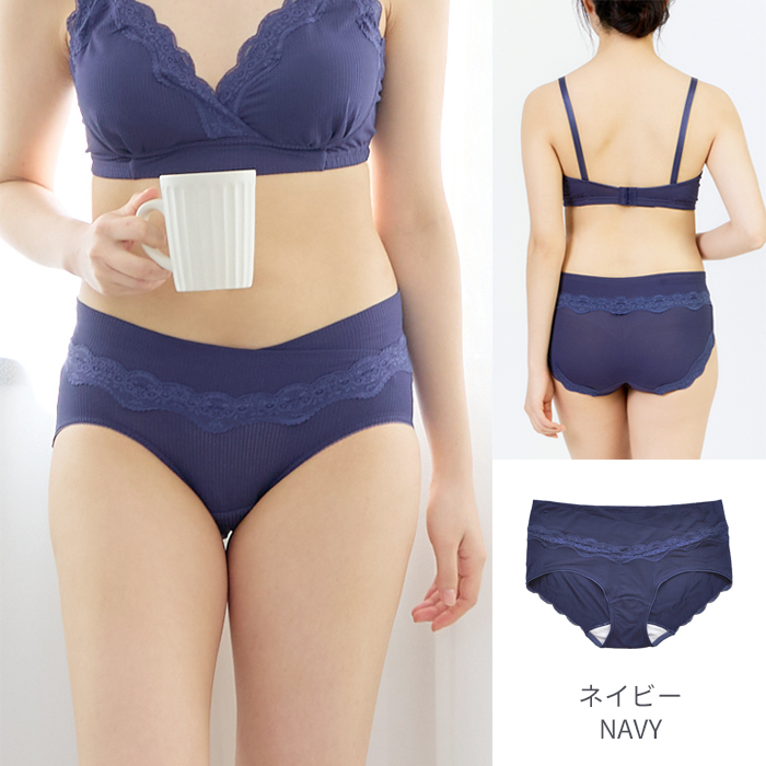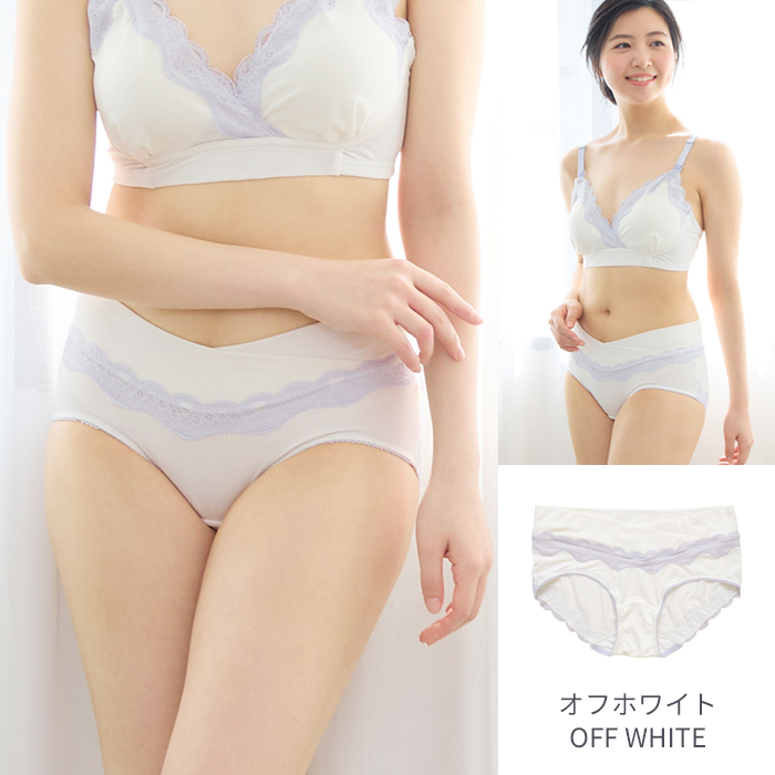 クロス形状のウエストベルトが特徴の産前産後兼用ショーツ。ゴムを使用せずパワーネットを身生地で包んだ広幅のウエストベルトは、大きくなるおなかに面でソフトフィット。身体にやさしい仕様です。浅履きタイプのショーツなので、みぞおちあたりの不快な締めつけから解放され楽ちん。健診のエコー時にもスムーズです。産前・産後と計算されたウエストラインでフロントをすっきり見せ、後はヒップをすっぽり包む安定感のあるバックスタイルです。身生地は、ストレッチ性のあるベア天竺素材なので、産前産後と長く使え、産後も上下コーデを楽しめます。ウエストとヒップはラグジュアリーなレースを贅沢にあしらいました。ヒップレースは直接肌に触れにくい生地の上に重ねる仕立てに。見た目も機能も充実なアイテムです。