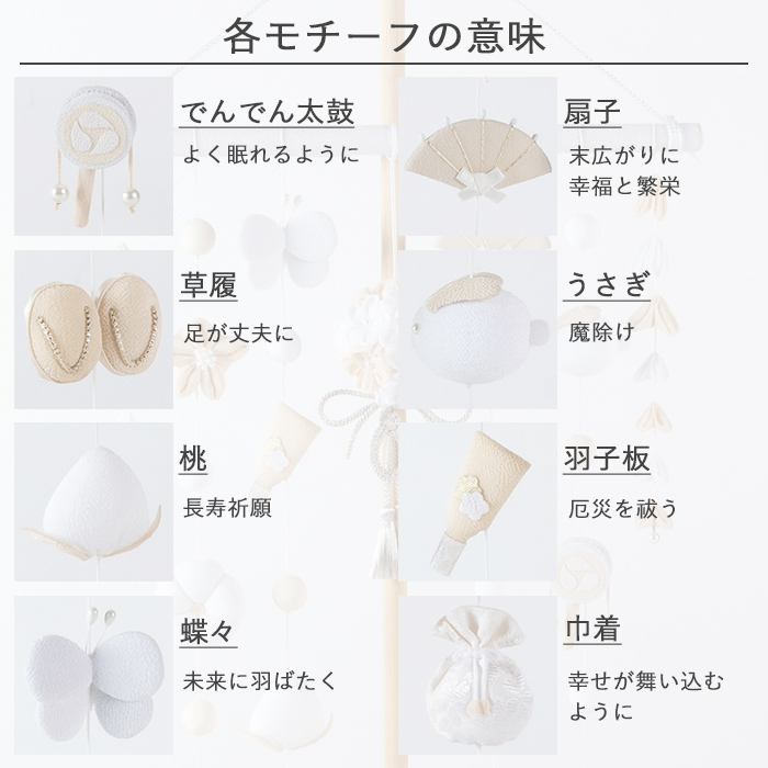 可愛いモチーフ1つ1つにはお子様の幸せと健康を願う意味が込められています。