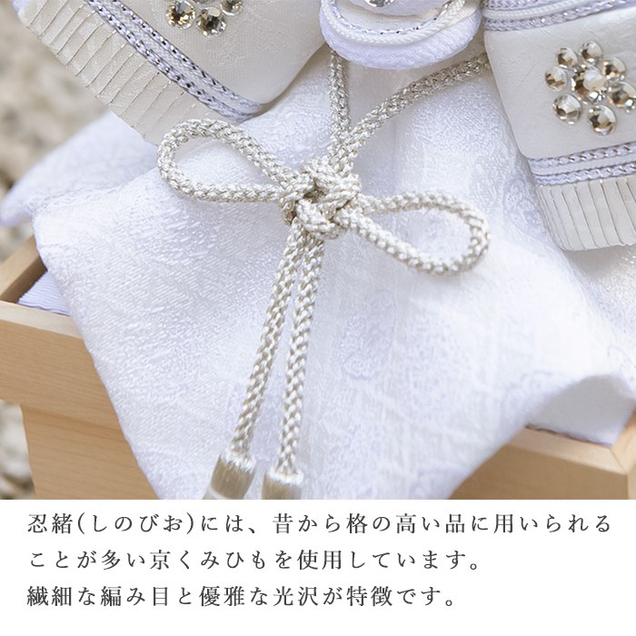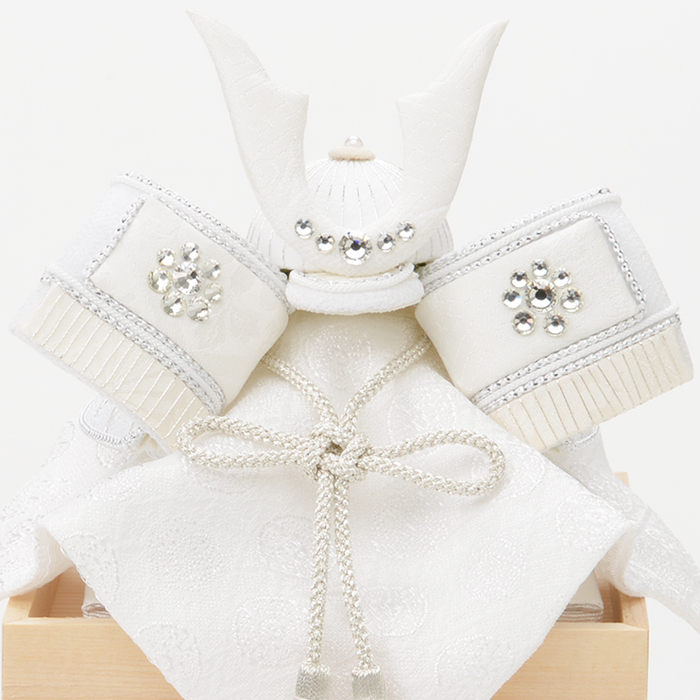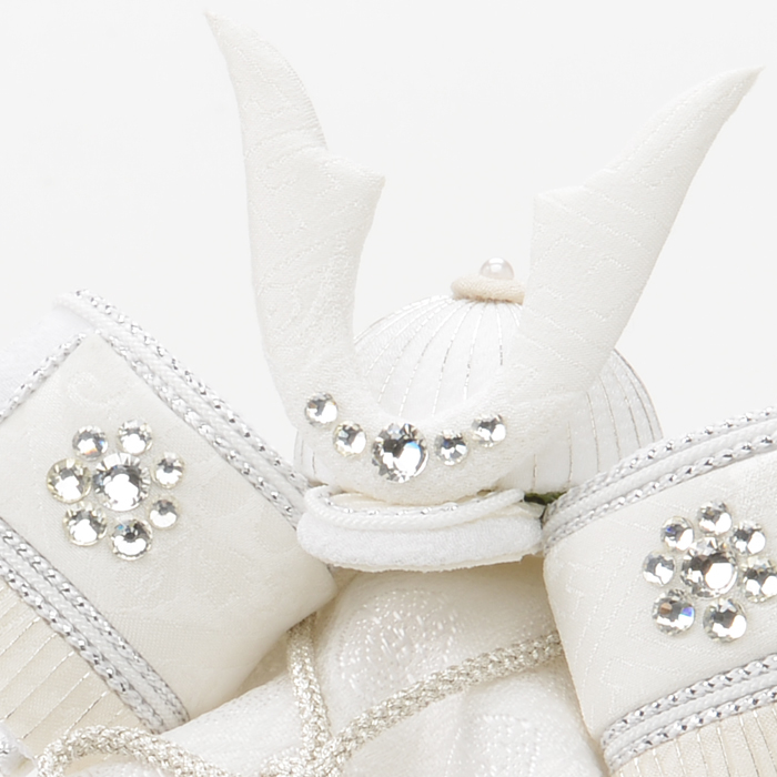 ラインストーンをポイント使いし、シンプルながらも神聖な仕上がりの兜飾りは、力強くも優美な佇まいです。