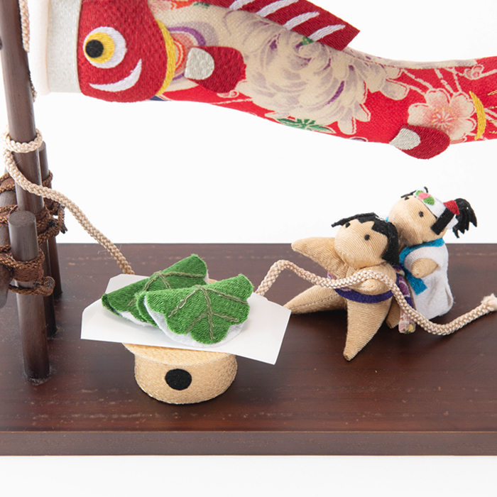 鯉のぼりを見上げる子供の姿が愛らしく、子どもの日にちなみ、柏餅もお付けしております。柏餅はお好きなところにお飾り頂けます。