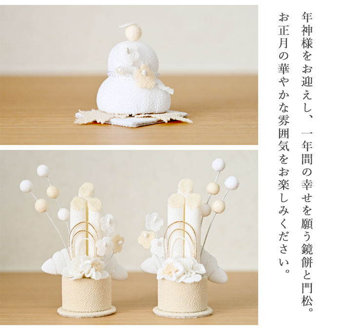 年神様をお迎えし、一年間の幸福を願う鏡餅と門松。コンパクトなので、玄関やリビングにぴったりなお正月飾りです。