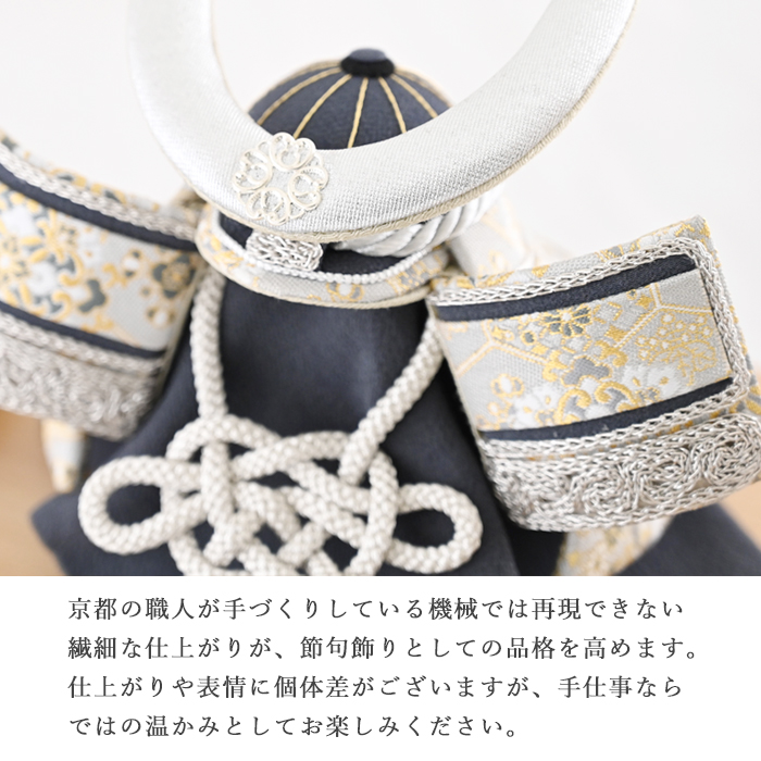 安心の日本製、京都の職人の手づくりによる、機械では再現できない繊細な仕上がりが、節句飾りとしての品格を高めます。仕上がりや表情に個体差がございますが、手仕事ならではの温かみとしてお楽しみください。